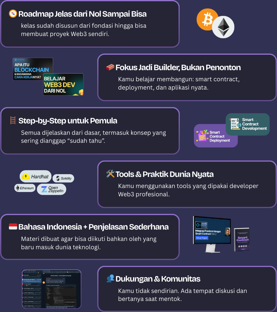 Cukup berbeda dari kebanyakan yang aku pelajari terkait web3. kalau ini udah include satu, udah gitu bahasa indonesia